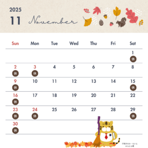 11月の営業日をお知らせいたします。