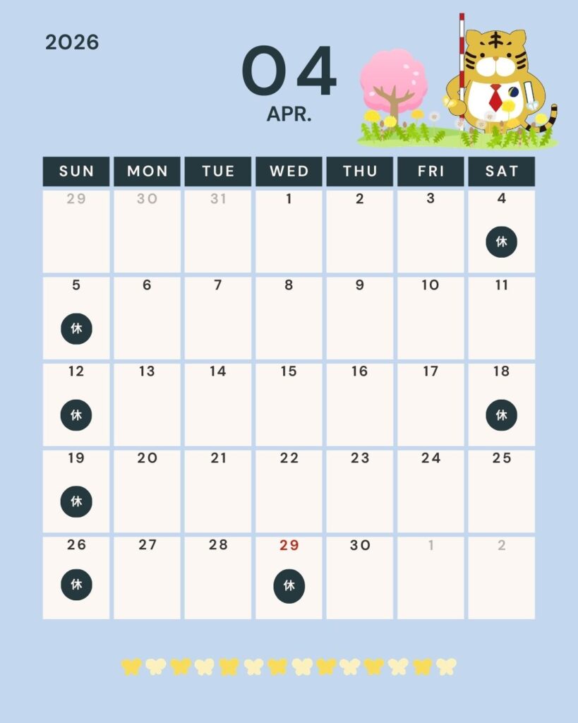 4月の営業日をお知らせいたします。